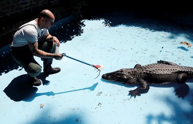 The elderly alligator was separated from three young alligators that arrived recently from Cuba. He spends his days in a pond in the summer, while his winter chambers are currently under reconstruction to resemble a cave.