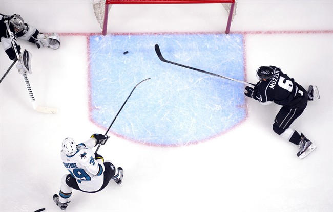 When Los Angeles took simultaneous penalties in the second period, Couture scored during 5-on-3 play after Quick got far out of position. That was enough offence to beat the Kings, who went nearly 78 minutes between goals.