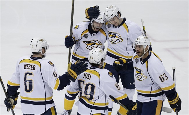 Shea Weber and Mattias Ekholm also scored as Nashville took a 2-0 playoff series lead for the first time in franchise history with another win over the Pacific Division champions. The enormity of the achievement wasn’t lost on the Predators, but they confined their celebrations to the ice.