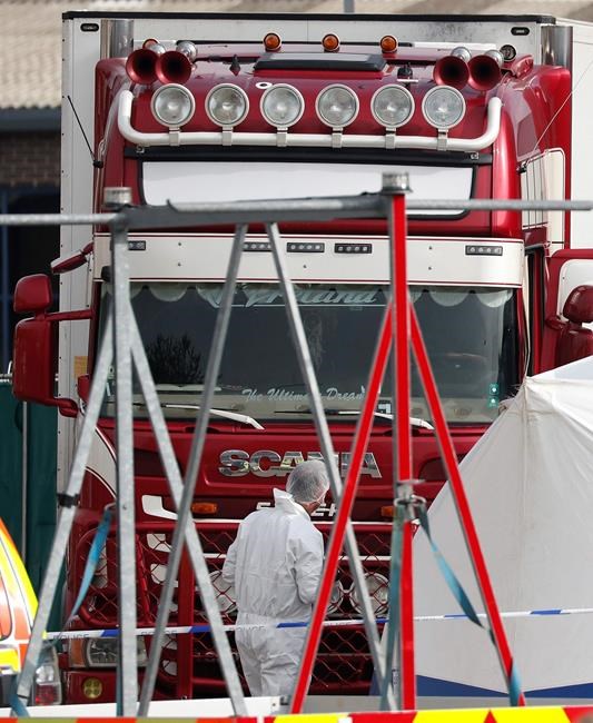 The bodies were found Oct. 23 in the English town of Grays, east of London. Police said the people who died ranged in age from 15 to 44. The 31 men and eight women are believed to have paid people traffickers for their clandestine transit into England.