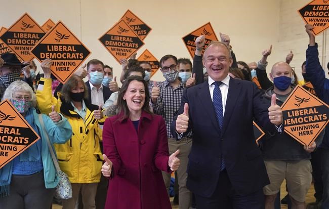 The Liberal Democrats, which was in a coalition government with the Conservatives between 2010 and 2015 before seeing its electoral fortunes wane dramatically, won Thursday’s election in Chesham and Amersham, 35 miles (57 kilometers) northwest of London.