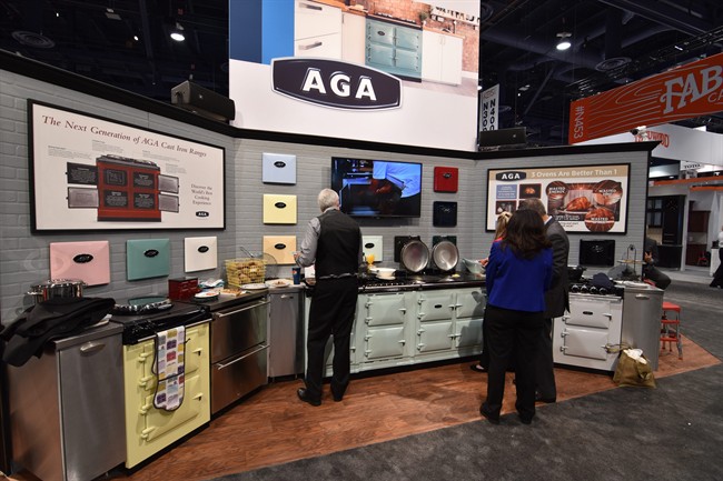Aga, owned by Middleby Corp., advertised a five-step “build your own” range with a choice of fuel types; options for two-, three-, five- or seven-oven configurations; and 15 enamel finishes, including British racing green, pistachio, duck-egg blue, aubergine and heather. One matching collection included a range, vent hood, dishwasher and refrigerator in dark red.