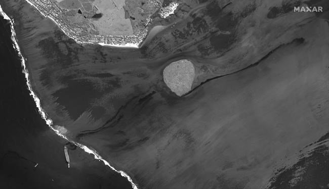 The government has declared an environmental emergency and France said it was sending help from its nearby Reunion island. Satellite images showed a dark slick spreading in the turquoise waters near wetlands that the government called “very sensitive.”