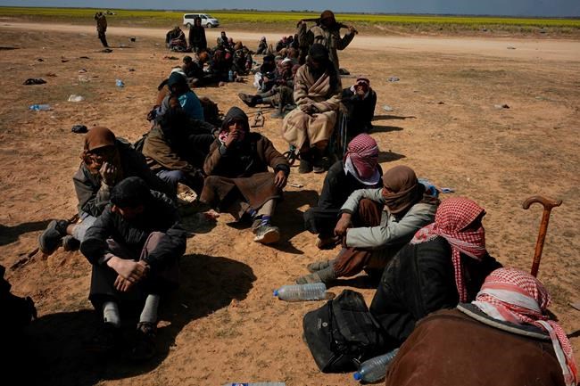 OUTSIDE BAGHOUZ, Syria – Suspected Islamic State group members, including foreign fighters, sat in a long line in a field of bright yellow flowers, exhausted and hunched over as they were questioned and searched Thursday by U.S.-led coalition members and Kurdish fighters. They were the latest group to surrender from the besieged final pocket of Syrian territory held by the militant group.