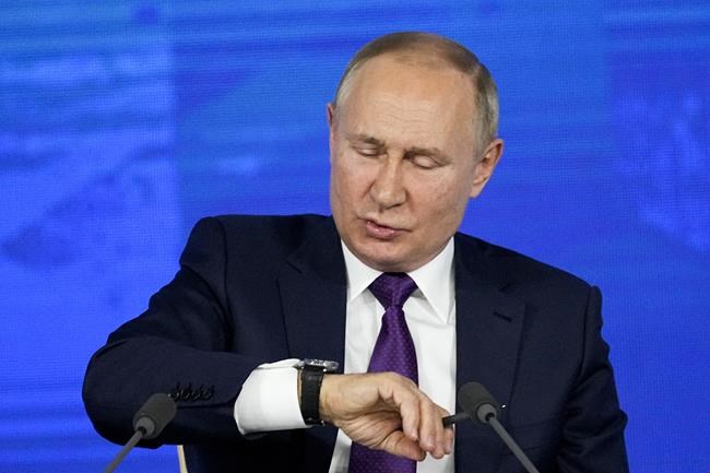 MOSCOW (AP) — Russian President Vladimir Putin urged the West on Thursday to “immediately” meet Russia’s demand for security guarantees precluding NATO’s expansion to Ukraine, saying the U.S. is “on the threshold of our home.”