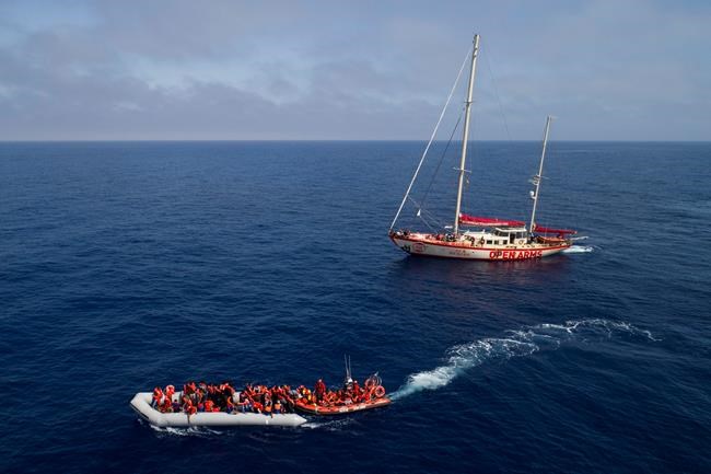 The migrants were rescued Sunday off Libya by the Spanish group Proactiva Open Arms, which hosted them on deck aboard their 30-foot (nine-meter) sailboat Astral.
