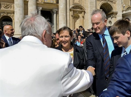 Francis always swings by the VIP seats at the end of his audience for a quick round of handshakes. A photographer from the Vatican newspaper L'Osservatore Romano snapped a photo of Francis reaching out to shake his hand.