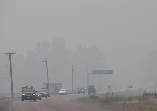 A thick, smoky haze hung over Kamloops on Saturday, making it difficult to see the dry, brush-covered hills on either side of the Thompson River Valley.