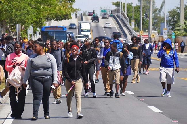 MIAMI – Hundreds of students have walked out of their Miami high school to protest gun violence after four current or former classmates were shot off campus.