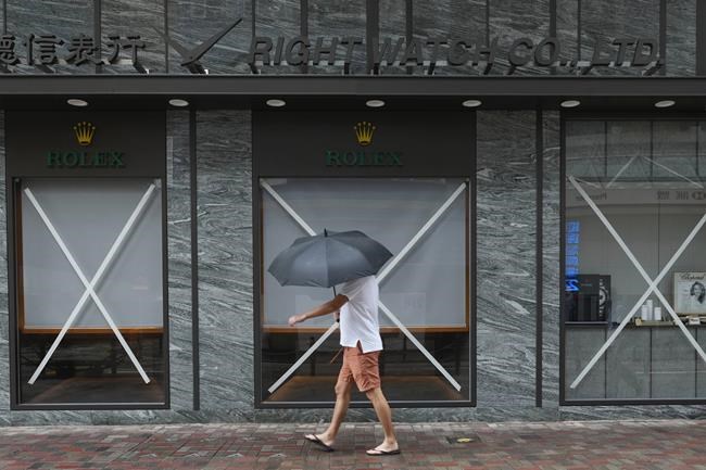 BEIJING (AP) — A strong tropical storm bearing down on Hong Kong on Wednesday left one person dead and 21 others injured, as city authorities suspended classes, stock market trading and government services.