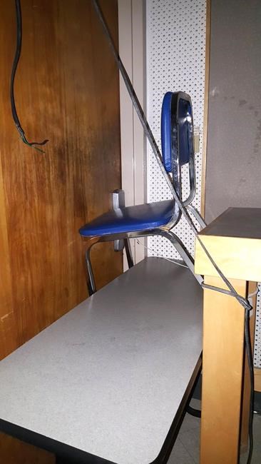 She said one clearly shaken student grabbed his belt and looped it in a figure eight around the door handle and a handrail, then placed a water bottle inside a loop to keep it taut.