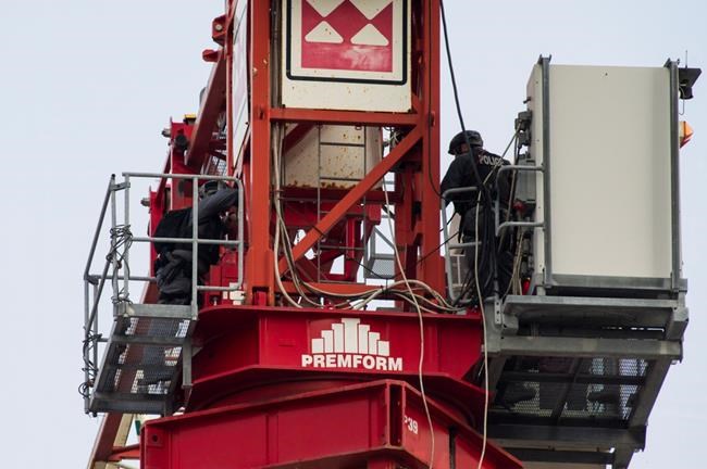 After police and Toronto fire conducted about an hour of negotiations, Flockhart was escorted down the crane at the condo construction site west of the downtown core.