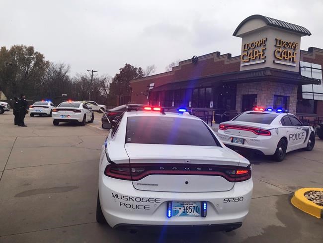 Muskogee police say an officer fatally shot 36-year-old Andrew Kana about 2 p.m. inside a bar and grill while trying to arrest him on assault and weapons charges from Oklahoma and Idaho.