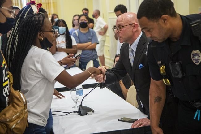 After the session reopened shortly after 6 p.m., the protesters returned to an increased police presence. After the trustees adjourned the meeting, the protesters began shouting at Davis and UNC Chancellor Kevin Guskiewicz to bring about promised changes for Black students which they said haven’t occurred yet. The students submitted a list of more than 50 demands, including decreased police presence and acknowledgement of Black contributions to the university.