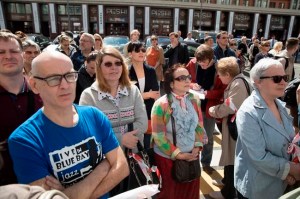 Moments later, the scene turned chaotic as two gunmen ran toward the vehicle and a crowd of bystanders ran between them, toward the hotel.