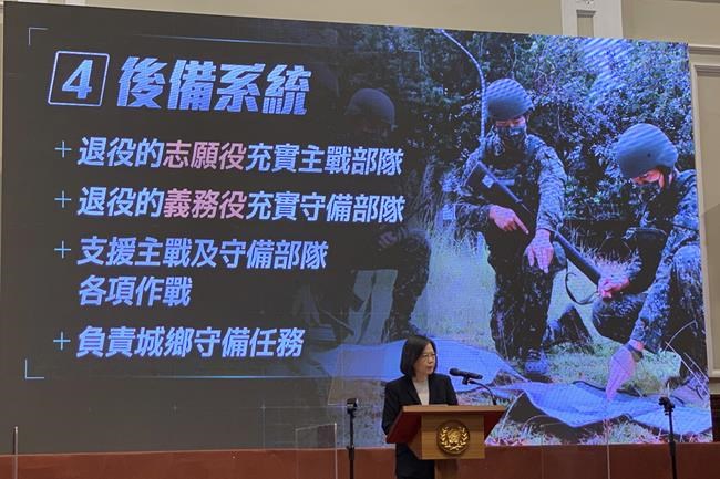 TAIPEI, Taiwan (AP) — Taiwan will extend its compulsory military service from four months to a year starting in 2024, President Tsai Ing-wen said Tuesday, as the self-ruled island faces China’s military, diplomatic and trade pressure.