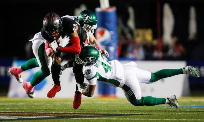 The Stampeders (12-4) have lost two in a row at home. Calgary can still clinch first in the West Division with a win in one of its two remaining games, or with a Roughrider loss Saturday.