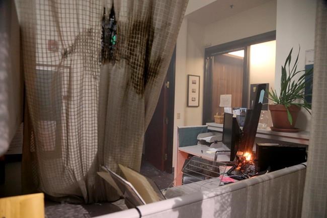 PORTLAND, Ore. – Protesters in Portland broke out the windows of a county government building, sprayed lighter fluid inside and set a fire in a demonstration that started Tuesday night and ended Wednesday morning with clashes with police, officials said.