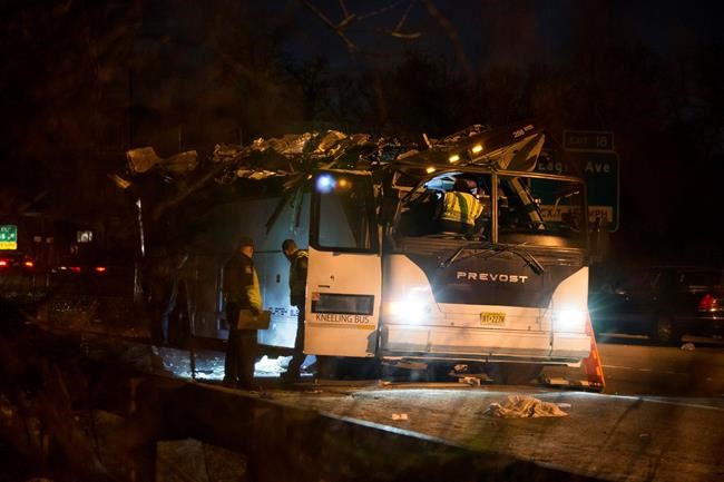 NEW YORK – The out-of-state driver of a charter bus full of high school students that crashed into a low-hanging overpass on a Long Island parkway was using a non-commercial GPS device that didn’t warn him about the hazard in time to prevent an accident that left two passengers seriously injured, police said Monday.