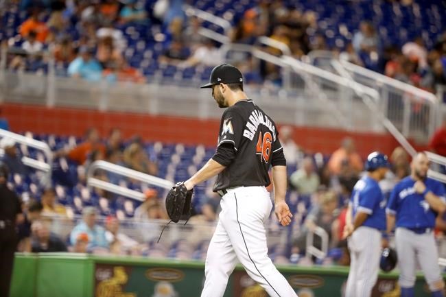 Joe Biagini (3-7) pitched a scoreless eighth for the win and Ken Giles worked a shaky ninth for his 19th save. Miami put two runners on before Austin Dean fouled out and Magneuris Sierra lined to left, ending the game.
