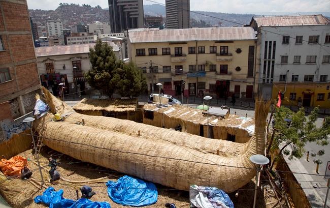 The nearly 60-foot (18-meter) boat was built in La Paz at more than 11,800 feet (3,600-meters) above sea level. It uses techniques developed by the indigenous people of the Andes cordillera to ply the waters of Lake Titicaca.