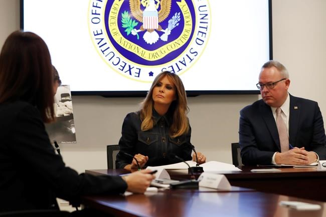 Mrs. Trump spoke in her brief remarks about a former opioid abuse addict who sat beside her on Tuesday night when President Donald Trump delivered his State of the Union address. Ashley Evans was treated at an Ohio facility, has been in recovery for more than a year and looks forward to being reunited with her infant daughter next week, the first lady said.