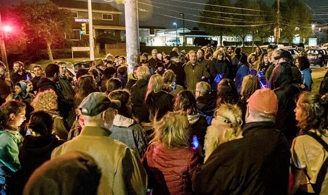 Dozens of Pittsburgh residents gathered Saturday evening for a vigil of song and prayer on a corner outside the synagogue, joined by Mayor Bill Peduto and Rabbi Jeffrey Myers, who himself survived the October attack on Tree of Life.