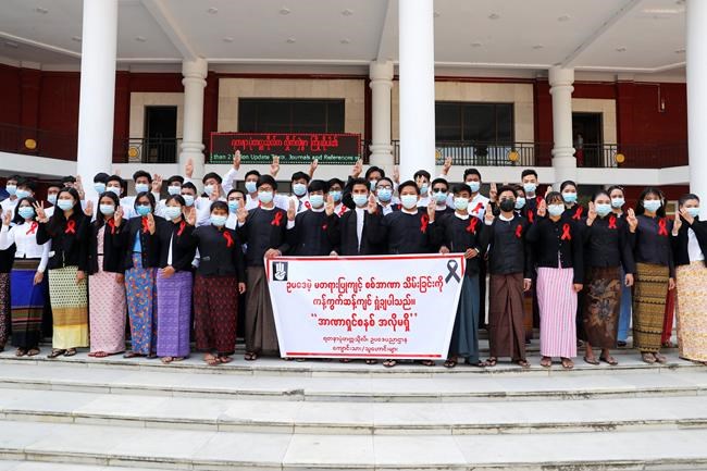 They shouted “down with dictatorship” and other slogans, marched with their hands in the air and flashed three-fingered salutes, a symbol of defiance adopted from protesters in neighbouring Thailand. There was no violence reported.