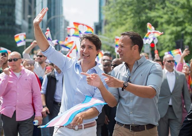 MONTREAL – Justin Trudeau marched with his Irish counterpart in Montreal’s Pride parade on Sunday, marking the first time a foreign head of government has joined a prime minister in a Canadian Pride celebration.