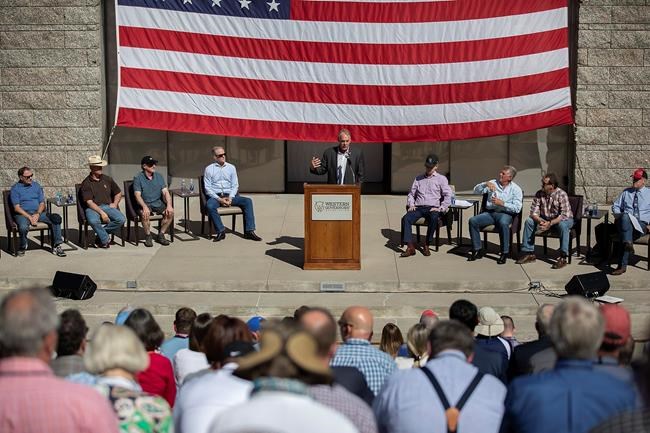 Zinke tweeted the photo before speaking Tuesday to the Western Governors Association at Mount Rushmore, South Dakota.