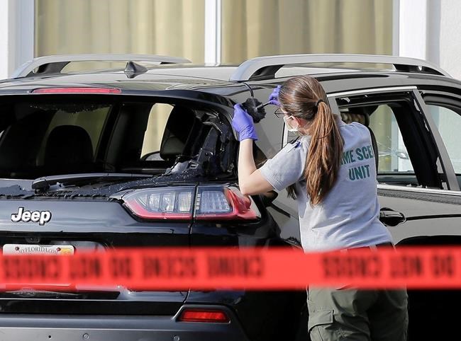 Later Friday, the SUV could be seen in the motel’s parking lot, with both the driver’s side window and the rear window completely shattered. The parking lot was lined with red police tape and law enforcement vehicles surrounded the property.