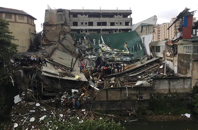 Sarath Wimalawardena, who works at a nearby construction site, said the building collapsed with a loud sound that was followed by an enormous cloud of dust. He said people in the area helped evacuate the injured before police and firefighters arrived.