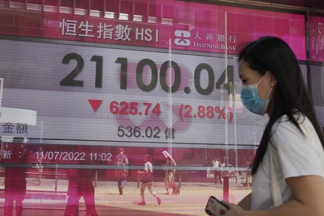Hong Kong’s Hang Seng slipped 2.8% to 21,124.20, while the Shanghai Composite fell 1.3% to 3,313.58.