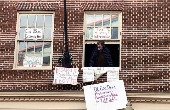 The activists, who consider socialist Nicolás Maduro to be the legitimate president, have protested inside the embassy in Washington for more than a month, sometimes chanting slogans from the windows of the red-brick building as opposition supporters heckle them from the street.