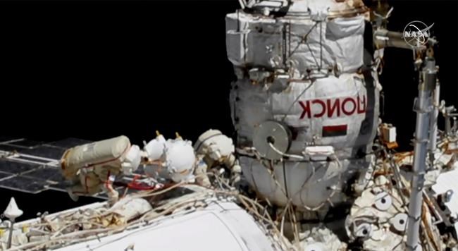 Ryzhikov and Kud-Sverchkov had better luck relocating an antenna cable, the first step in decommissioning Russia’s old Pirs spacewalking compartment to make room for the new lab. By then, the spacewalk was past the four-hour mark, and flight controllers near Moscow urged the two to rest: “It’s been intense.”