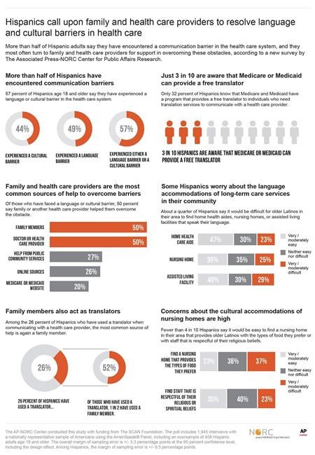 WASHINGTON – Nearly 6 in 10 Hispanic adults have had a difficult time communicating with a health care provider because of a language or cultural barrier, and when they do they often turn to outside sources for help, according to a new study conducted by The Associated Press-NORC Center for Public Affairs Research.