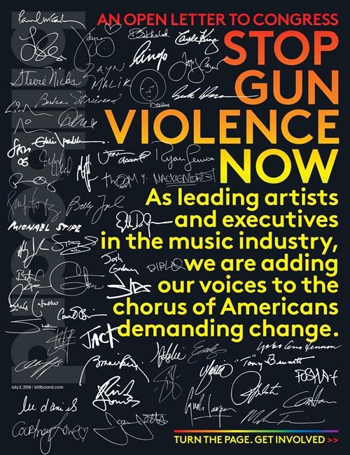 Billboard wrote: “We call on Congress to do more to prevent the gun violence that kills more than 90 Americans every day and injures hundreds more.”