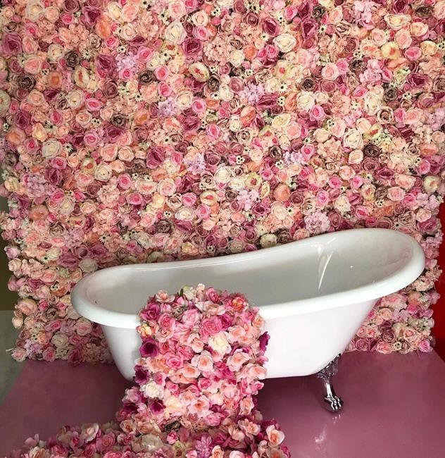 Designed photo-op spaces include the personal hall of frames, vintage pay phones, fire red locker room, donut wall, Vogue Magazine booth and Venetian rose bath. The plan is to change the designs up every so often.
