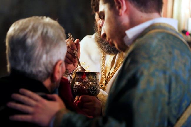 Concessions also were made in Russia. In mid-March, the Russian Orthodox Church released instructions on adjusting the sacrament during the pandemic. Priests were told to wear gloves when handing out the bread, to disinfect the spoon and to use disposable cups for the wine.
