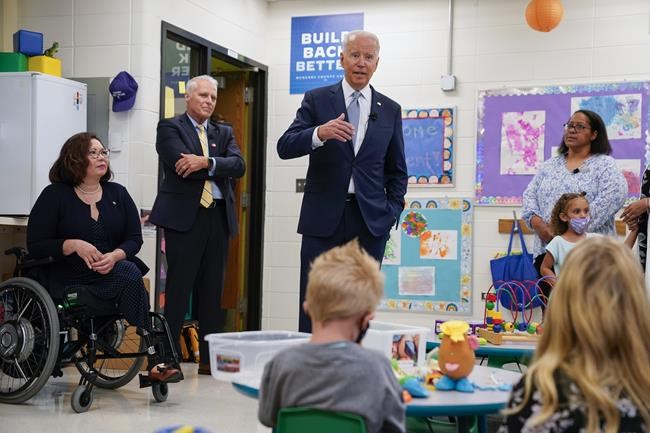 Before the speech, Biden toured a metals lab at the McHenry County College. His message was that any investments in manufacturing, roads and bridges should be paired with funding for child care, health care and education.
