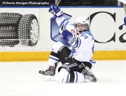 Alferd corralled a loose puck just in front of the Warriors net and rifled a wrist-shot past the outstretched arm of Andy Desautels for the game-winning goal, sending over 2,100 fans into a frenzy. The game-winner officially scored at 19:41 of the third period.