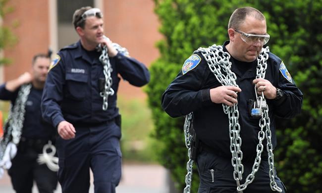 City police officers and firefighters “provided assistance” at the school’s Homewood campus shortly before 5 a.m. to reopen Garland Hall, the primary administrative building, the university announced. Protesters had chained the doors shut and blocked stairwells, defying a city fire marshal’s orders to keep the entrances and exits clear. Firefighters used an electric saw to get inside, finding a few protesters who chanted slogans like “No justice, no peace! No private police!” and sang decades-old folk songs.