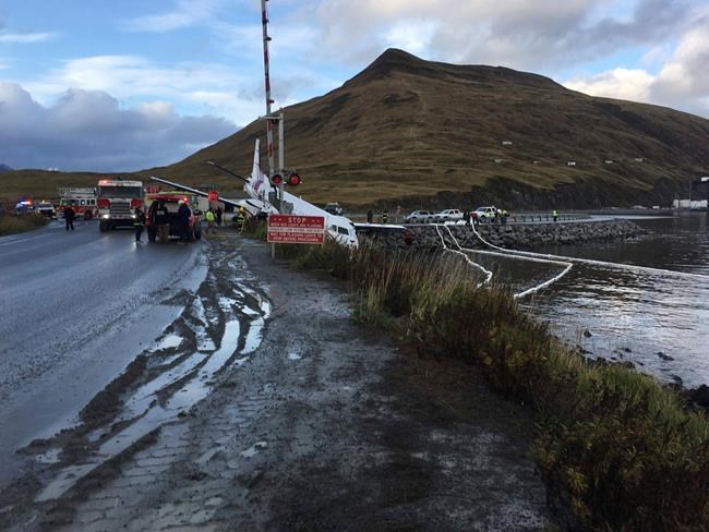 An eyewitness said the flight from Anchorage to Dutch Harbor landed about 500 feet (150 metres) beyond the airport, near the water. Social media posts show the plane’s nose hanging over a rock embankment, but not in the water.