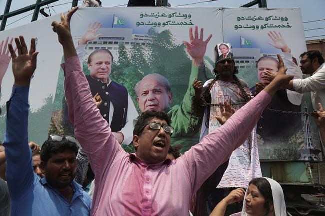 In a televised appeal to supporters from London earlier this week, Sharif said he was not afraid of prison and asked people to vote for his party. He also used the opportunity to again criticize Pakistan’s powerful military, which has ruled the country directly or indirectly for most of its 71-year history, saying Pakistan now has a “state above the state.”