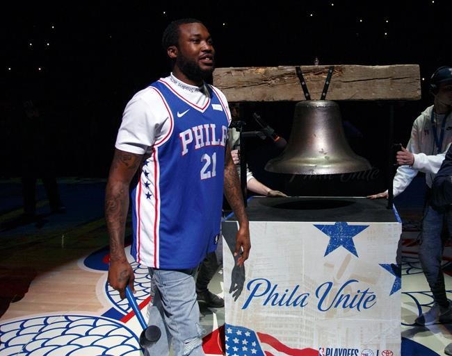 “Welcome home Meek Mill,” the game announcer told the rapper, who wore a Joel Embiid jersey and sat courtside next to actor Kevin Hart, Sixers co-owner Michael Rubin, Philadelphia Eagles owner Jeffrey Lurie and Democratic Pennsylvania Gov. Tom Wolf.