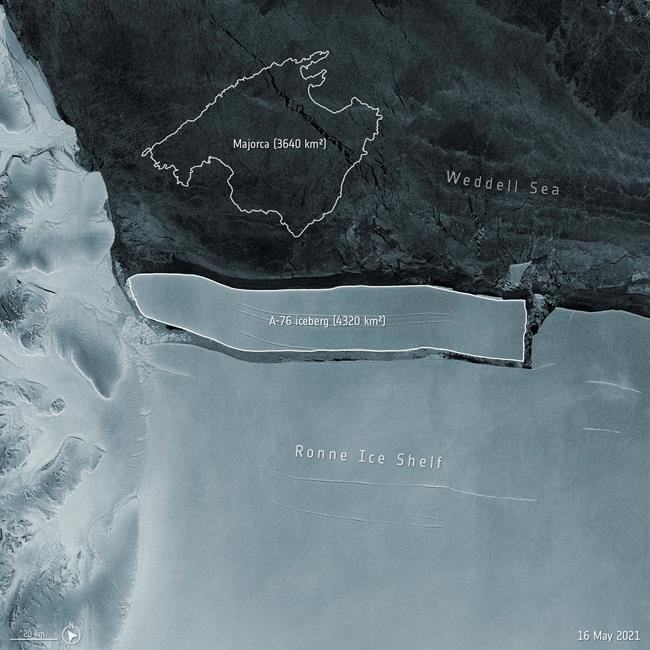 The iceberg, dubbed A-76, is more than 40 times the size of Paris, or about 73 times as big as Manhattan, making it the largest currently afloat.