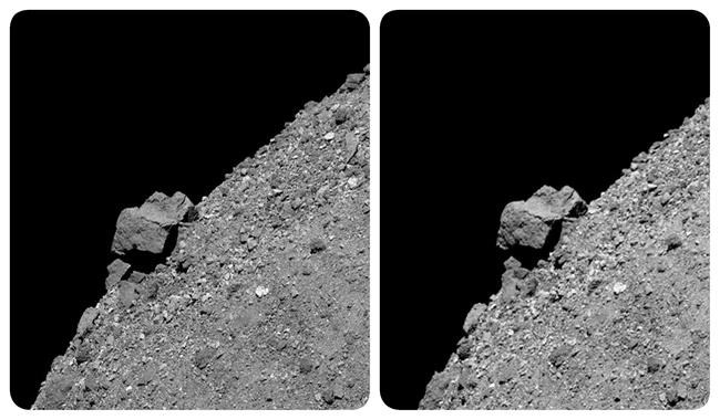 Photos released Wednesday focus on the even smaller space rock Bennu. The 3D images taken by NASA’s Osiris-Rex spacecraft , flying alongside Bennu, show a jagged boulder that’s 170 feet (52 metres) across.