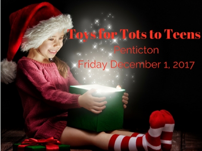 Toys for Tots to Teens will be working with over 16 local organizations that provide support to families in Penticton in need during Christmas. While the holidays are a celebration, for many it can be a stressful time due to lack of finances. The community is invited to bring a new unwrapped toy on December 1, 2017 and start off the Christmas season with an act of kindness and giving.