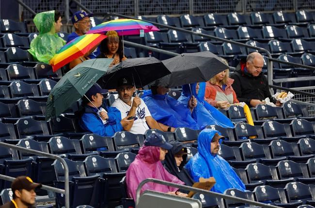 LOS ANGELES (AP) — Californians tried to weather the extremes of a changing climate Friday, as a punishing heat wave that has helped fuel deadly wildfires had the state teetering on the edge of blackouts for a 10th consecutive day while a tropical storm barreled ashore with the promise of cooler temperatures but also possible flooding.