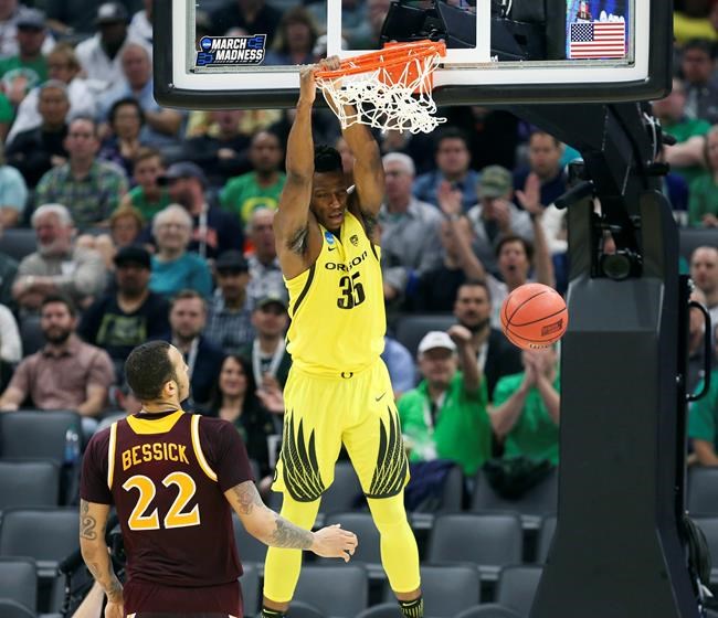 Dillon Brooks of Mississauga, Ont., scored 18 points and Payton Pritchard 16 points and Jordan Bell 17 with 12 boards.